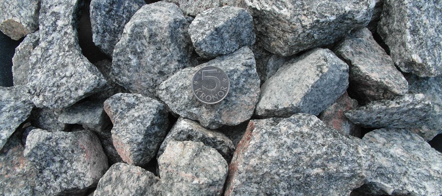 Makadam 32/64 framställs av sprängt berg som genom krossning och siktning får önskad storlek.